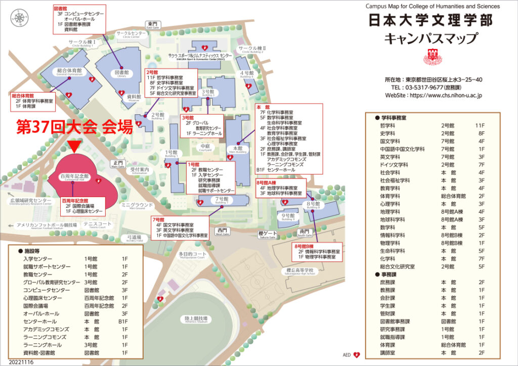 会場所在地:〒156-8550 東京都世田谷区桜上水3丁目25−40日本大学文理学部 百周年記念館